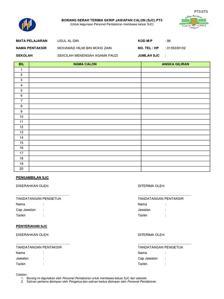 7 Borang Serah Terima Sjc Pt3 Lp Pdf